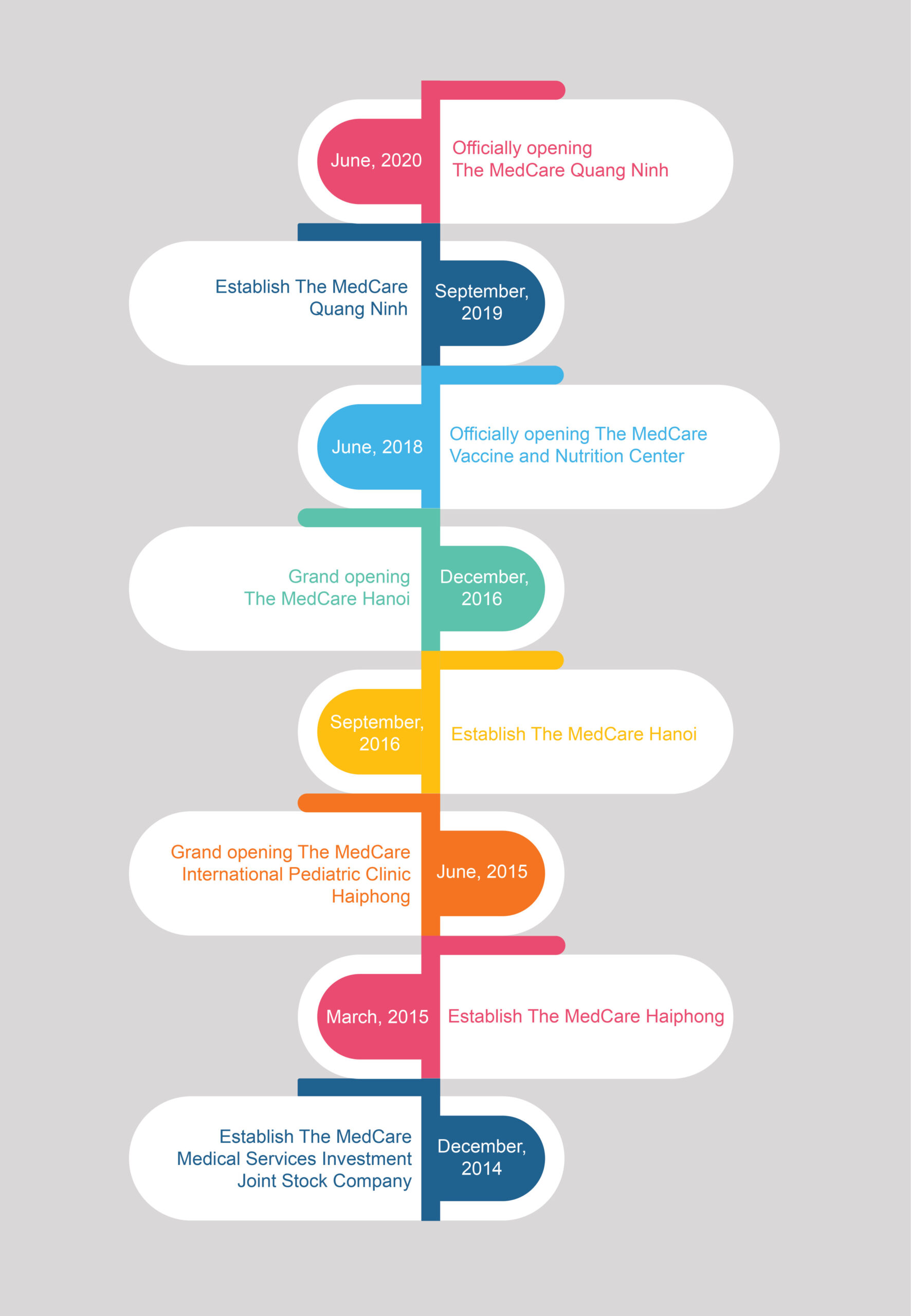 Until 07/2019, Healthcare service system The Medcare has shown itself through important milestone included: