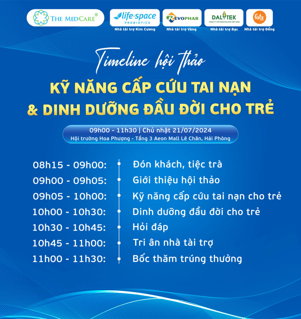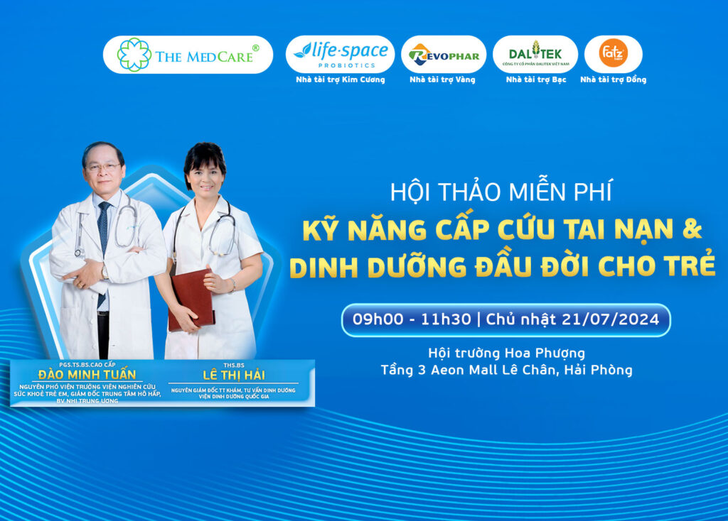 Nỗ lực hoàn thành sứ mệnh song hành cùng phụ huynh trong hành trình nuôi dưỡng con yêu khỏe mạnh, an toàn, hệ thống phòng khám The MedCare sẽ tổ chức hội thảo Nhi khoa chủ đề Kỹ năng cấp cứu tai nạn thường gặp và dinh dưỡng đầu đời cho trẻ vào ngày 21/07/2024 nhằm nâng cao kỹ năng xử lý tình huống kịp thời cho các gia đình có con nhỏ.
