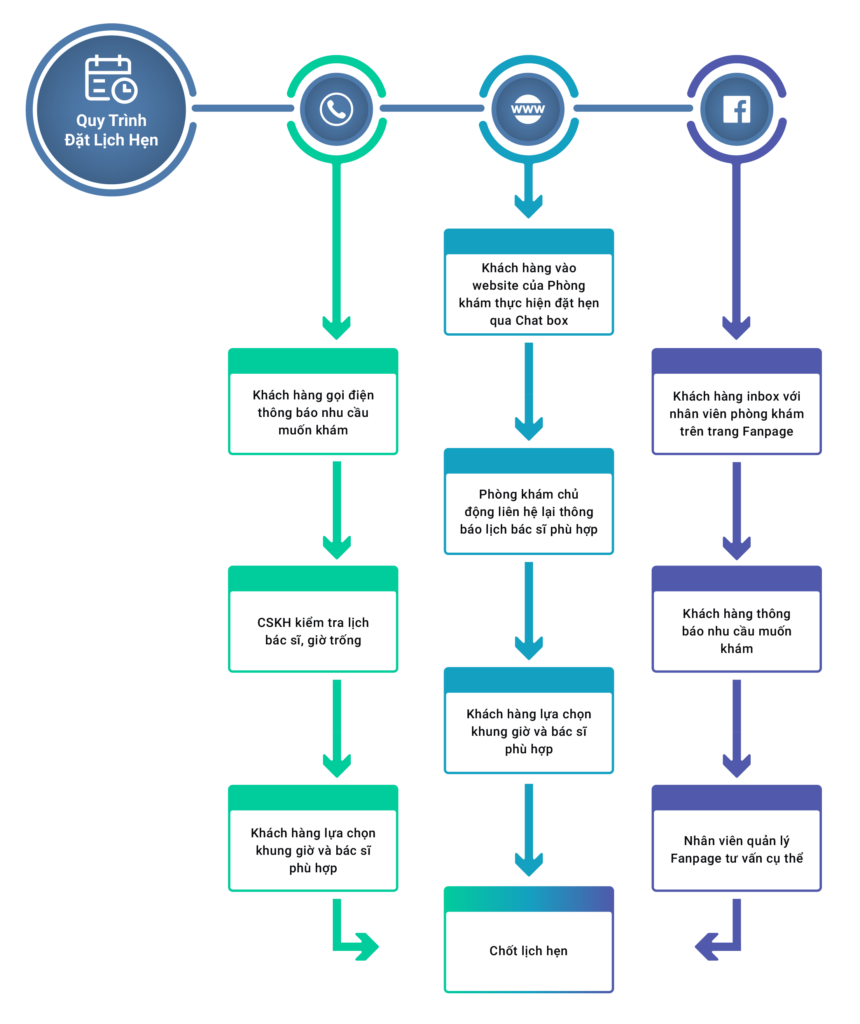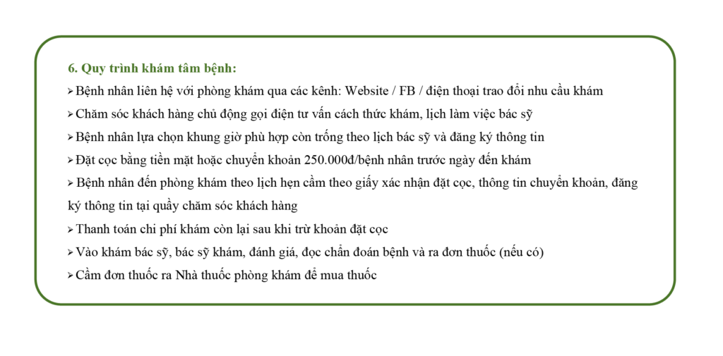 Triển khai dự án: Đây là lúc chúng tôi cùng bạn chính thức bắt tay vào việc hiện thực hóa dự án trên giấy, bao gồm các công đoạn xây dựng cơ sở hạ tầng, set up phòng khám, vận hành phóng khám theo kế hoạch kinh doanh đã đề ra
