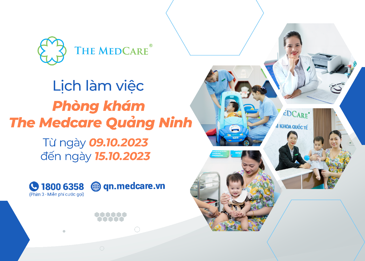 CHI NHÁNH HẠ LONG – QUẢNG NINHLỊCH LÀM VIỆC CỦA BÁC SĨ NGÀY 9/10/2023 – 15/10/2023 Phòng khám The Medcare Quảng Ninh xin trân trọng thông báo lịch làm việc của các bác sĩ như sau: ————-🌻 THỨ HAI : Ngày 9/10/2023 ⏰ 08h – 17h30:▪️ ThS.BSNT.CKI Đỗ Thị Vân Trang▪️ BS CKI Nguyễn Tiến