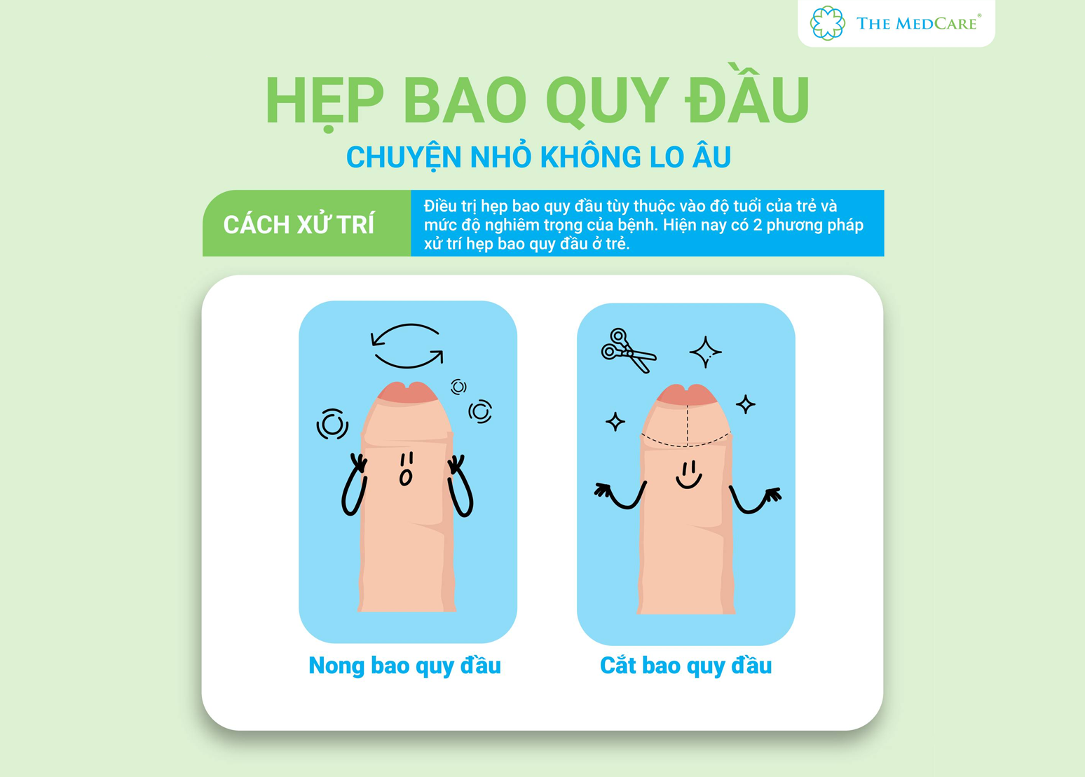 XỬ LÝ HẸP BAO QUY ĐẦU – CHUYỆN NHỎ ĐỂ THE MEDCARE LO Là chuyện nhỏ, bởi ba mẹ có thể yên tâm xử lý hẹp bao quy đầu cho bé ngay tại phòng khám The Medcare hàng tuần, ba mẹ nha! Lịch làm việc của bác sĩ Ngoại khoa tại The Medcare cụ thể như sau:-