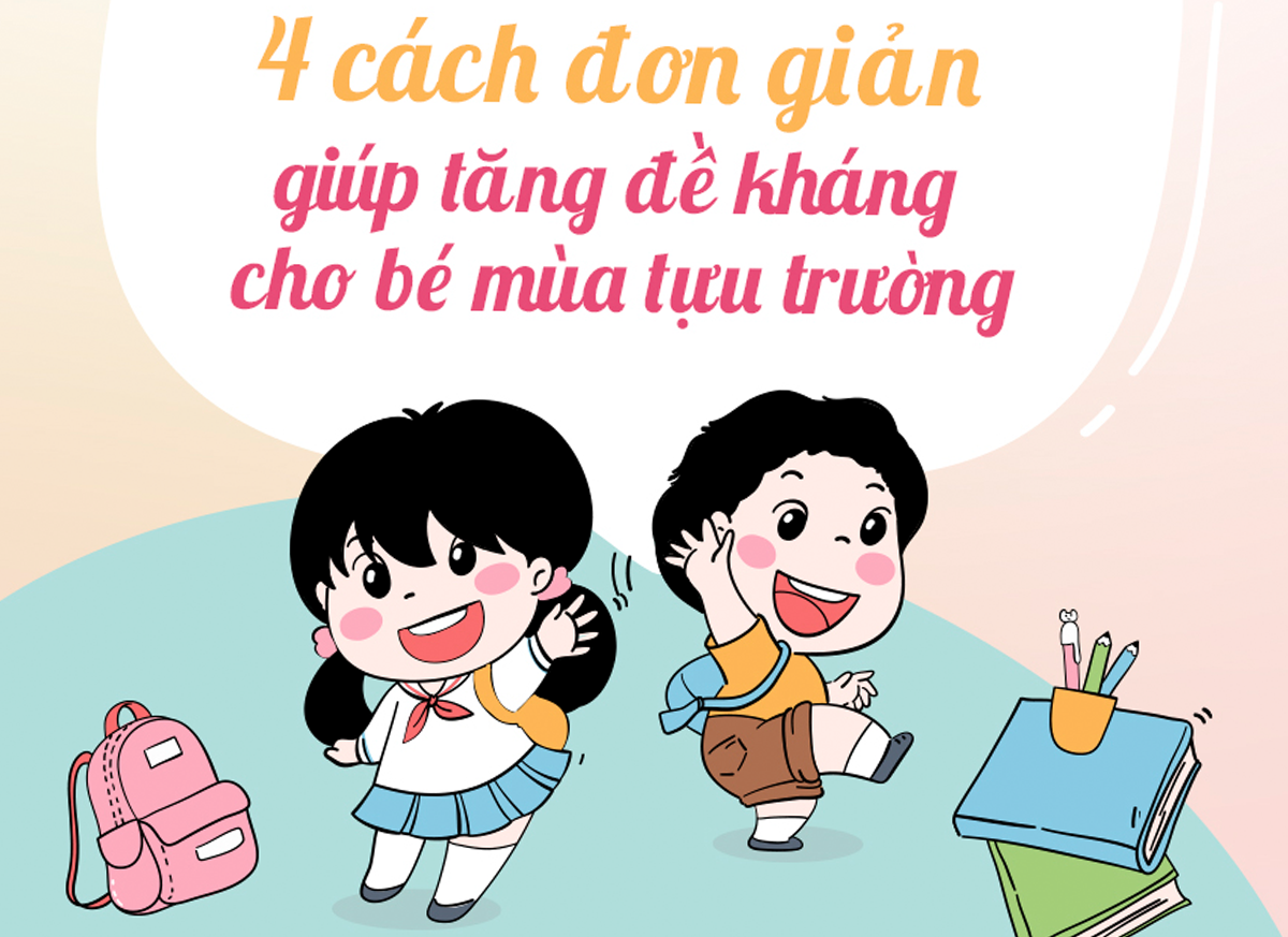 MÁCH MẸ 4 CÁCH ĐƠN GIẢN ĐỂ TĂNG CƯỜNG ĐỀ KHÁNG CHO CON MÙA TỰU TRƯỜNG Có tới 80% trẻ sẽ ốm khi bắt đầu đi học do tiếp xúc với nhiều bạn bè và môi trường nhiều tác nhân gây bệnh. Để con có một năm học mới thuận lợi, hạn chế nghỉ