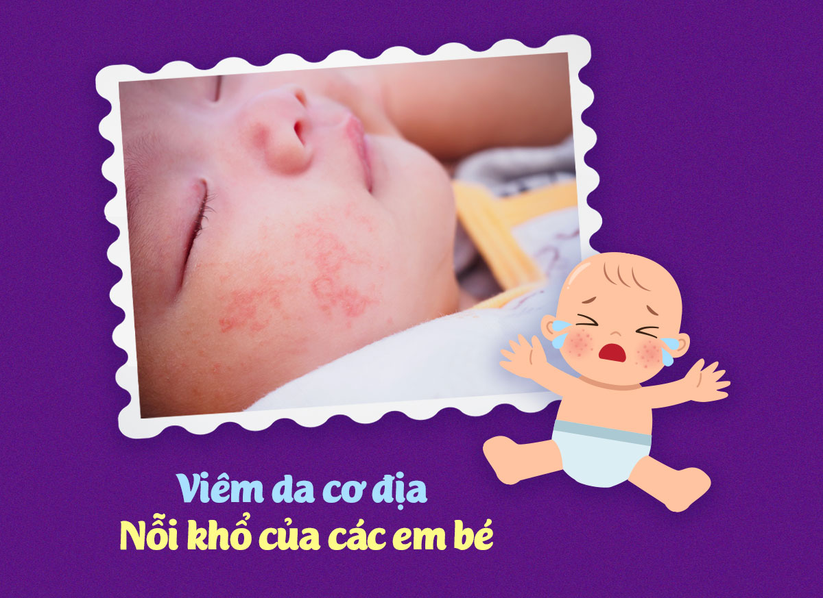 VIÊM DA CƠ ĐỊA – NỖI KHỔ CỦA CÁC EM BÉ Những nốt mẩn đỏ li ti hay cả vùng da khô sần, ửng đỏ có thể khiến con khó chịu cả ngày, còn mẹ thì lo lắng không thôi. Hiện tượng này kéo dài và mạn tính, được gọi là chàm – viêm