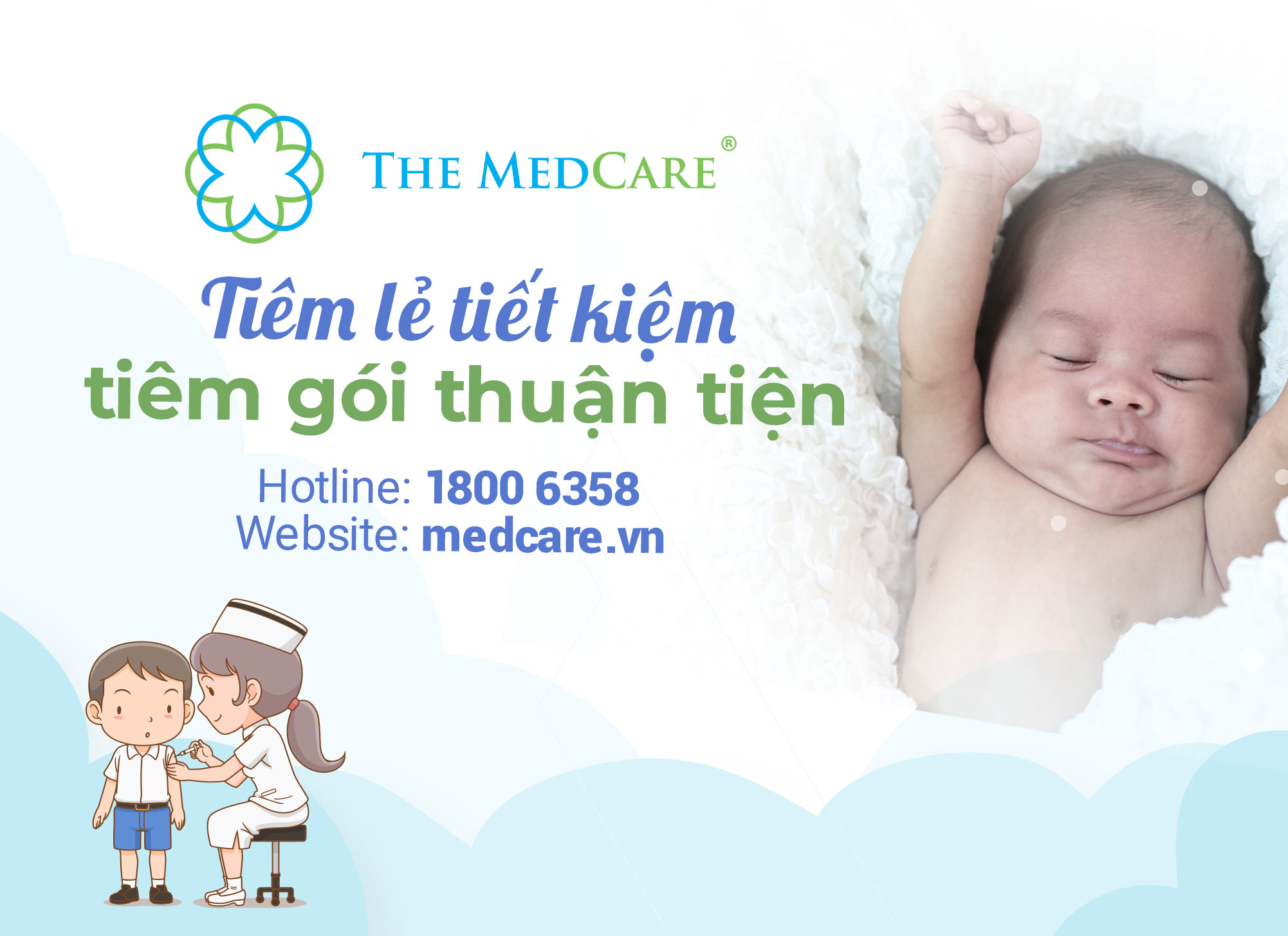 CHỌN TIÊM CHỦNG 5 SAO – NHẬN QUYỀN LỢI THIẾT THỰC Đây cũng chính là lý do thuyết phục hàng chục ngàn phụ huynh quyết định lựa chọn dịch vụ vắc xin tại hệ thống phòng khám The Medcare: Miễn phí khám sàng lọc trước tiêm cho 100% khách hàng Không phụ thu thêm