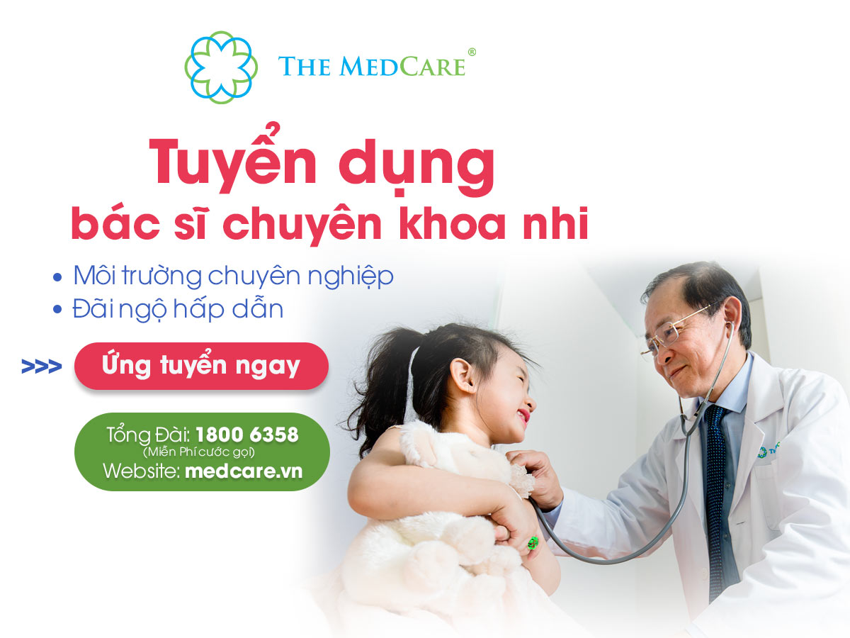 TUYỂN DỤNG BÁC SĨ NHI KHOA – ĐÃI NGỘ XỨNG ĐÁNG, MÔI TRƯỜNG CHUYÊN NGHIỆP Để đảm bảo công tác khám, chữa bệnh diễn ra hiệu quả, đáp ứng nhu cầu của số lượng bệnh nhân ngày càng tăng cao trên toàn hệ thống, The Medcare cần tuyển thêm 01 bác sĩ chuyên khoa Nhi