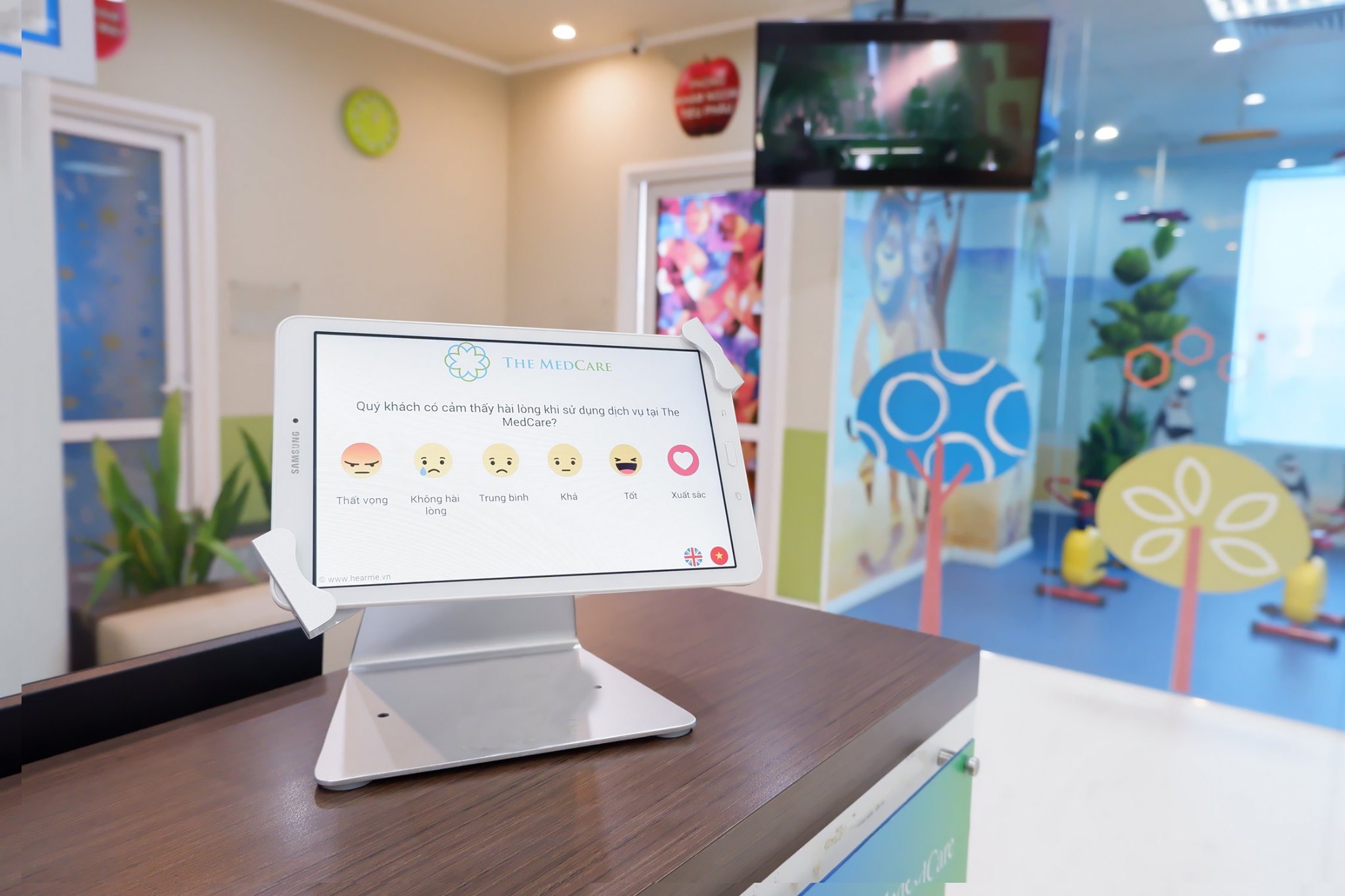 Từ hôm nay, phụ huynh và các bé khi tới sử dụng dịch vụ tại The Medcare sẽ được tự tay đánh giá chất lượng dịch vụ và khám chữa bệnh của hệ thống phòng khám Chúng tôi đã lắp đặt các bộ máy tính bảng tại khu vực tiếp đón và nhà thuốc để